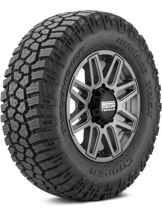 The Cooper Discoverer Rugged Trek blends the bold look of a mud tire with the comfort and quiet of an all-terrain. Designed with dual sidewall patterns (choose your style), it delivers enhanced durability, excellent wet and dry performance, and superior off-road traction. Whisper Grooves™ reduce road noise while stone ejectors and staggered tread blocks boost off-road bite. Ideal for daily drivers who want aggressive